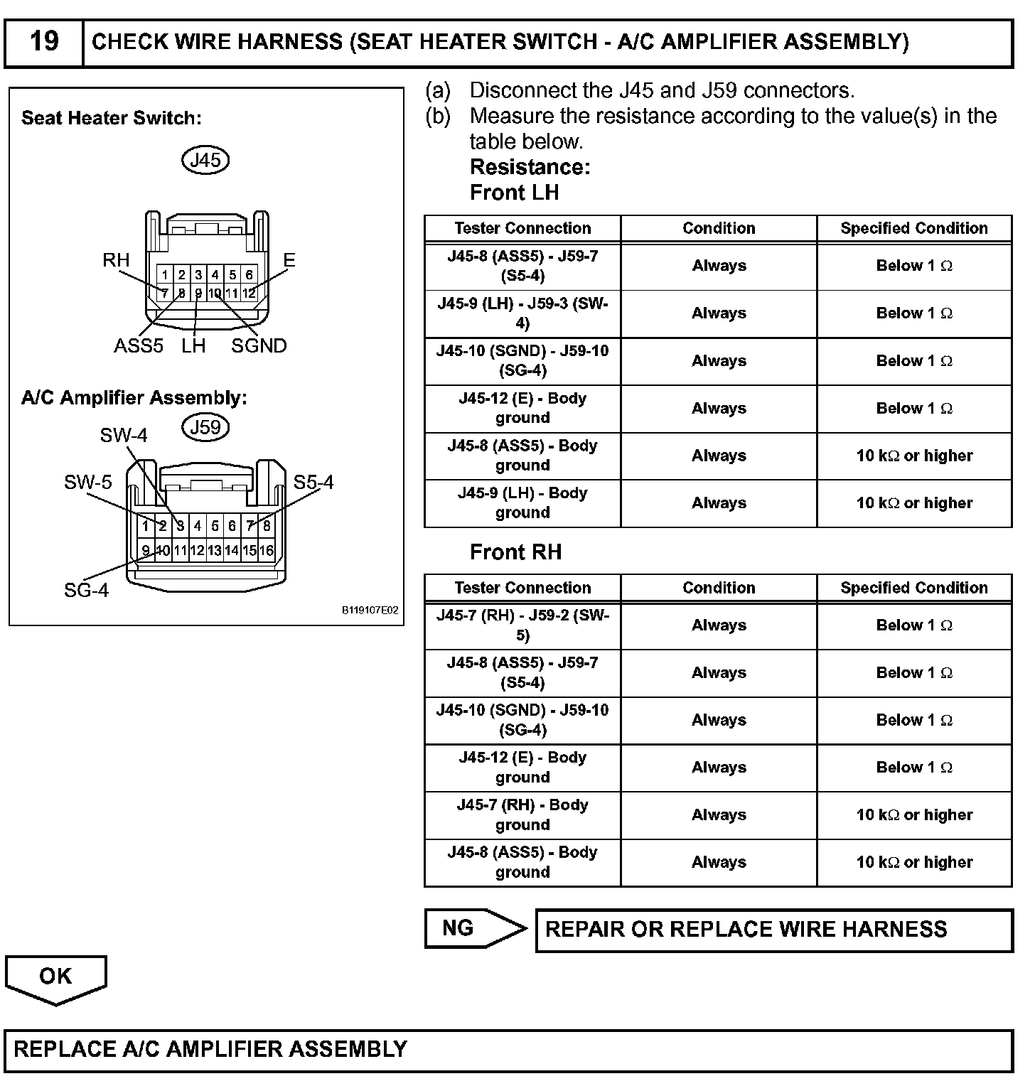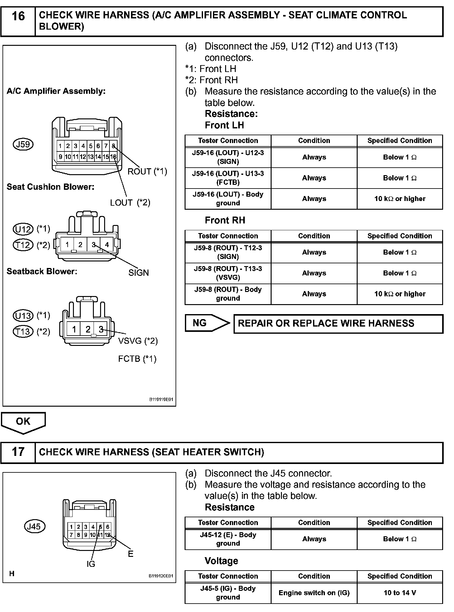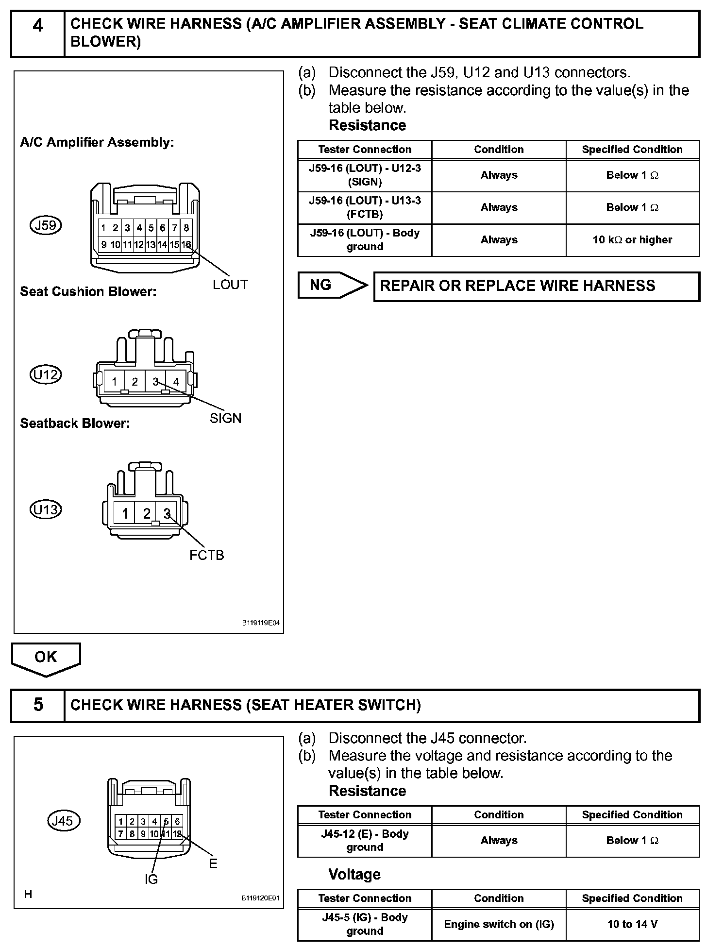 The A/C amplifier assembly receives seat position signals when the engine switch is on (IG), and then transmits airflow amount signals to each seat climate blower.