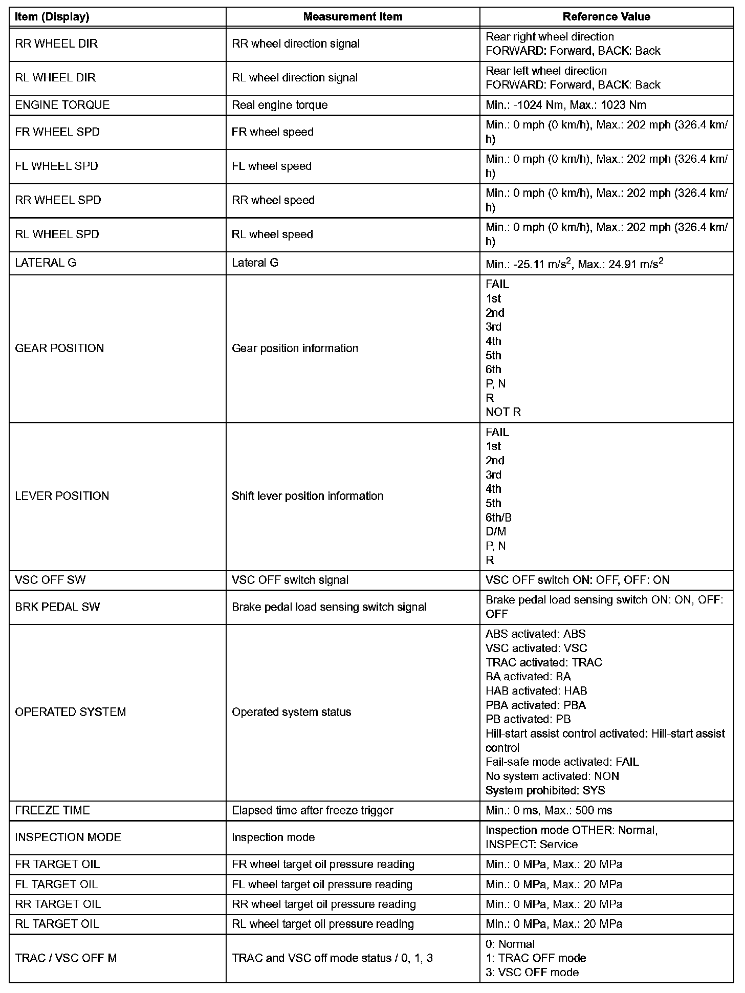 - Freeze Frame Data at the time a DTC is detected: When the skid control ECU stores data at the time a DTC is detected, no updates will be performed until the data is cleared.