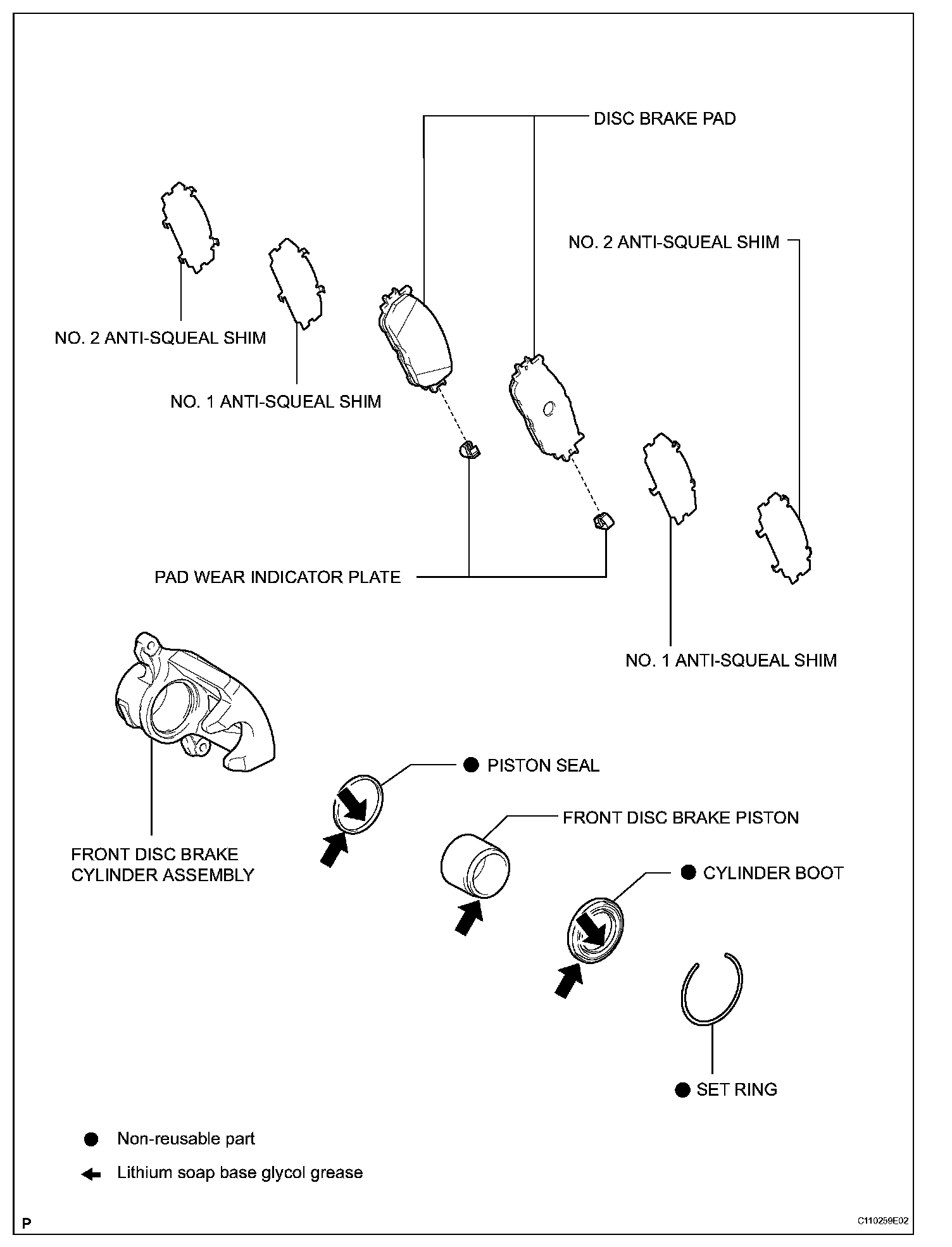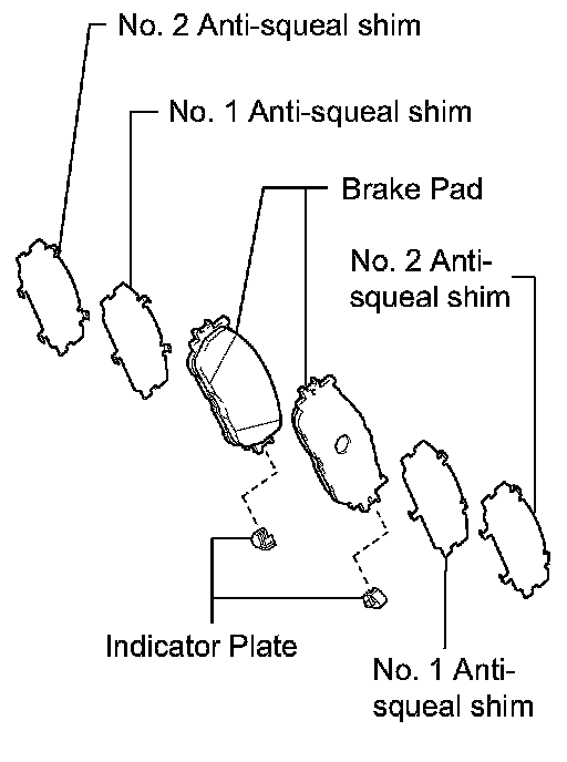a. Install the 2 No. 1 anti-squeal shims to each pad.