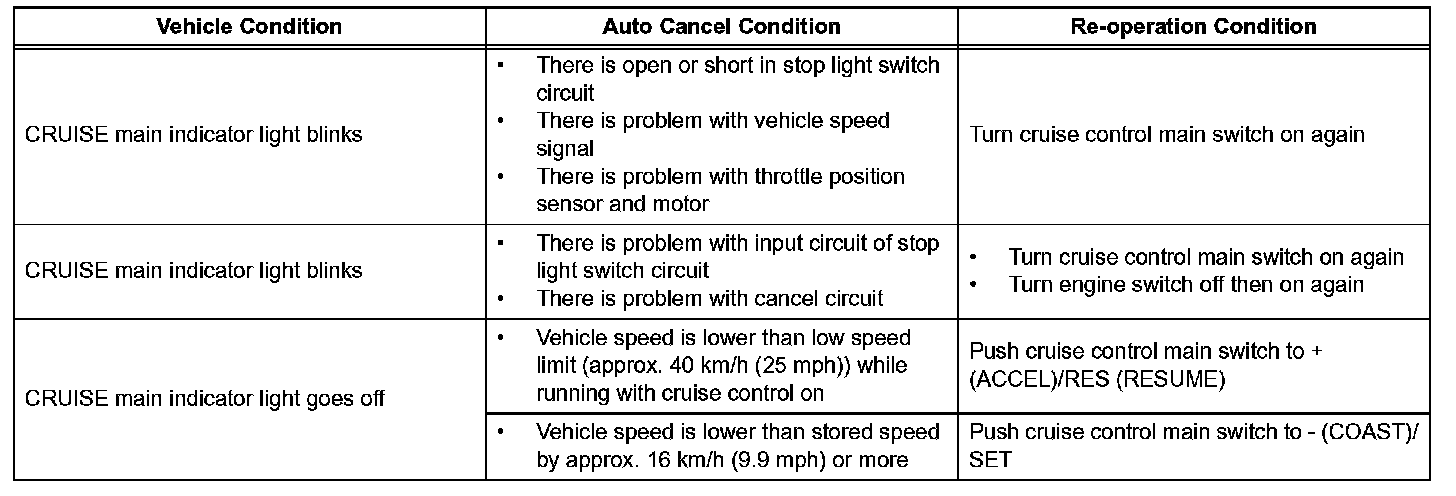 is in operation, the system clears the stored vehicle speed in the ECM and cancels the cruise control operation.