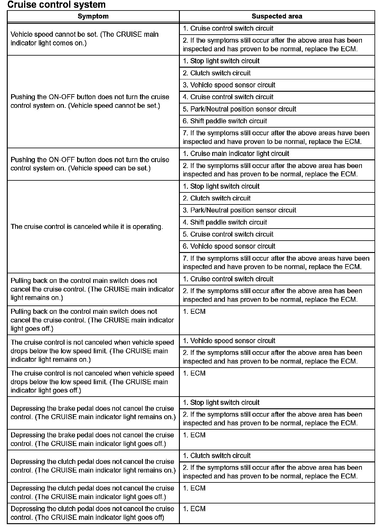 PROBLEM SYMPTOMS TABLEProblem Symptoms Table - Cruise Control System (Part 1):