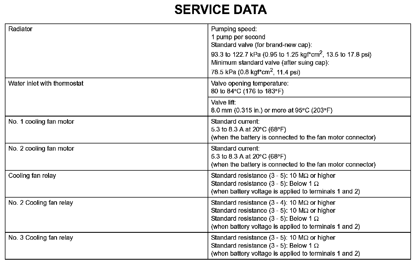 Cooling - Service Data: