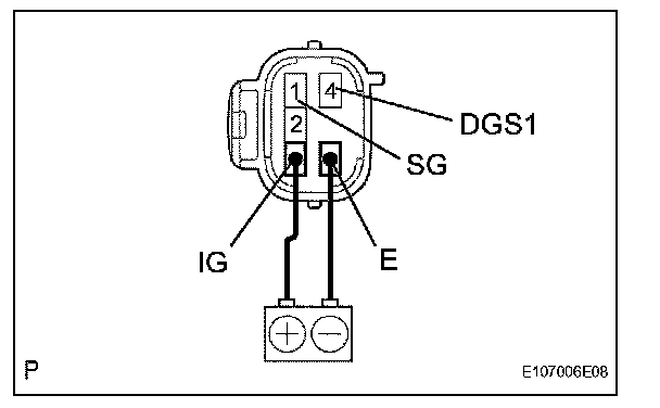 1. Apply battery voltage between terminals 3 (IG) and 6 (E).