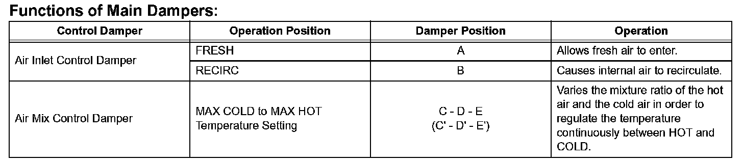 2. The A/C amplifier detects cabin temperature based on a room temperature sensor signal and automatically switches the air inlet mode to the recirculate air mode to prevent the cabin temperature from becoming too high.