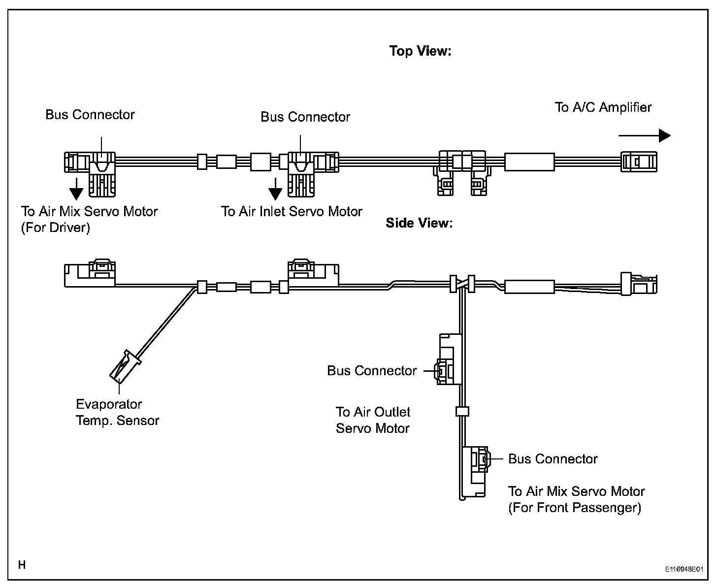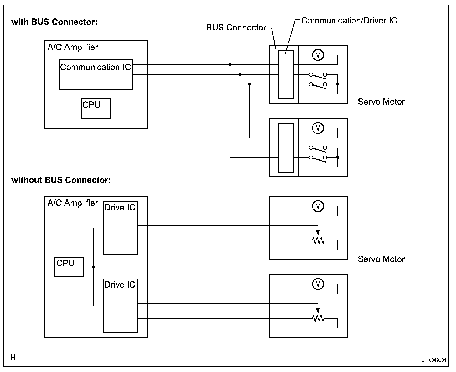 a. A BUS connector is used in the wire harness connection that connects the servo motor from the A/C amplifier.