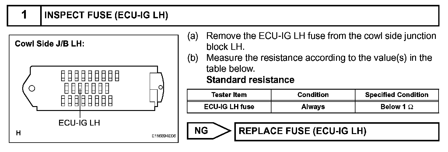 HINT: Start the engine before inspection. Check the IG1 relay or battery if the engine does not start.