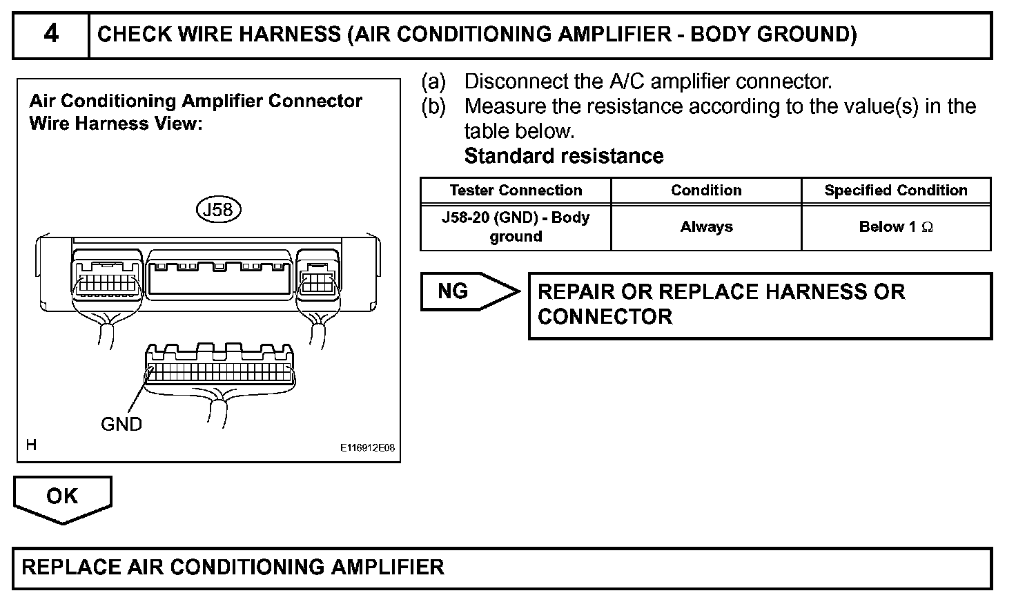 The main power source is supplied to the A/C amplifier when the engine switch on (IG).