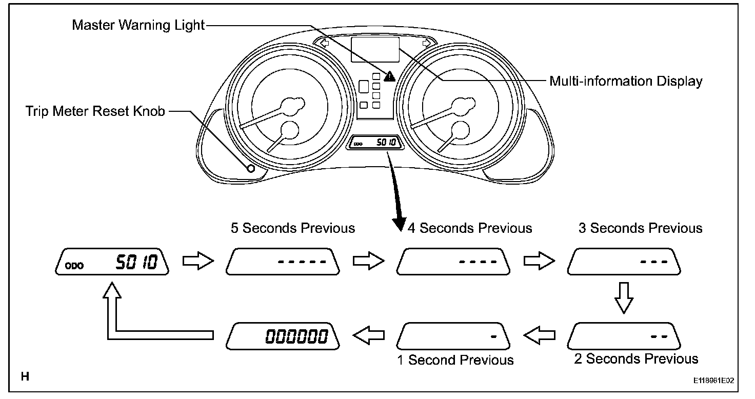 a. Engine switch on (IG) while pressing and holding the trip meter reset knob. Hold the trip meter reset knob until the following conditions are met and 5 seconds have passed.