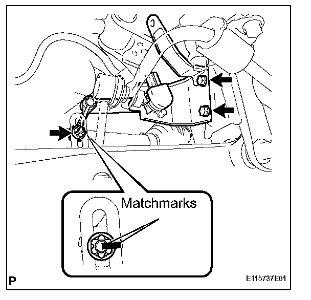 1. Align the matchmarks on the rear height control sensor sub-assembly and bracket.