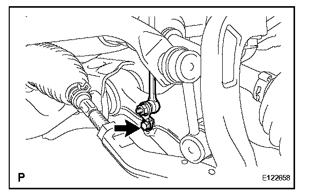 1. Align the matchmarks and also the trace of the nut, and install the rear height control sensor sub-assembly and bracket.