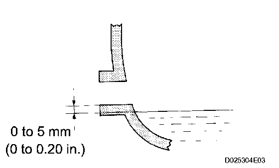 c) Check that the oil surface is within 5 mm (0.20 inch) of the lowest point of the transmission filler plug opening.