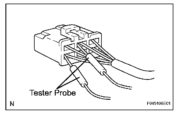 a. When checking resistance with a tester, insert the tester probes from the backside (harness side) of the connector.