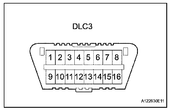 The vehicle's ECM uses the ISO 15765-4 for communication protocol. The terminal arrangement of the DLC3 complies with SAE J1962 and matches the ISO 15765-4 format.