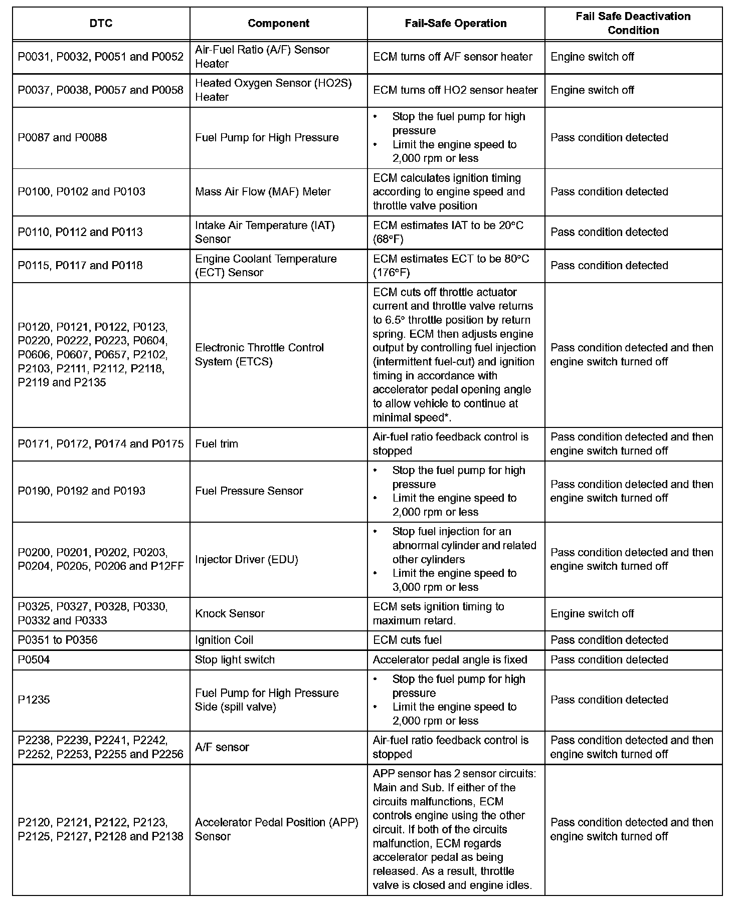 If any of the given DTCs are set, the ECM enters fail-safe mode to allow the vehicle to be driven temporarily.