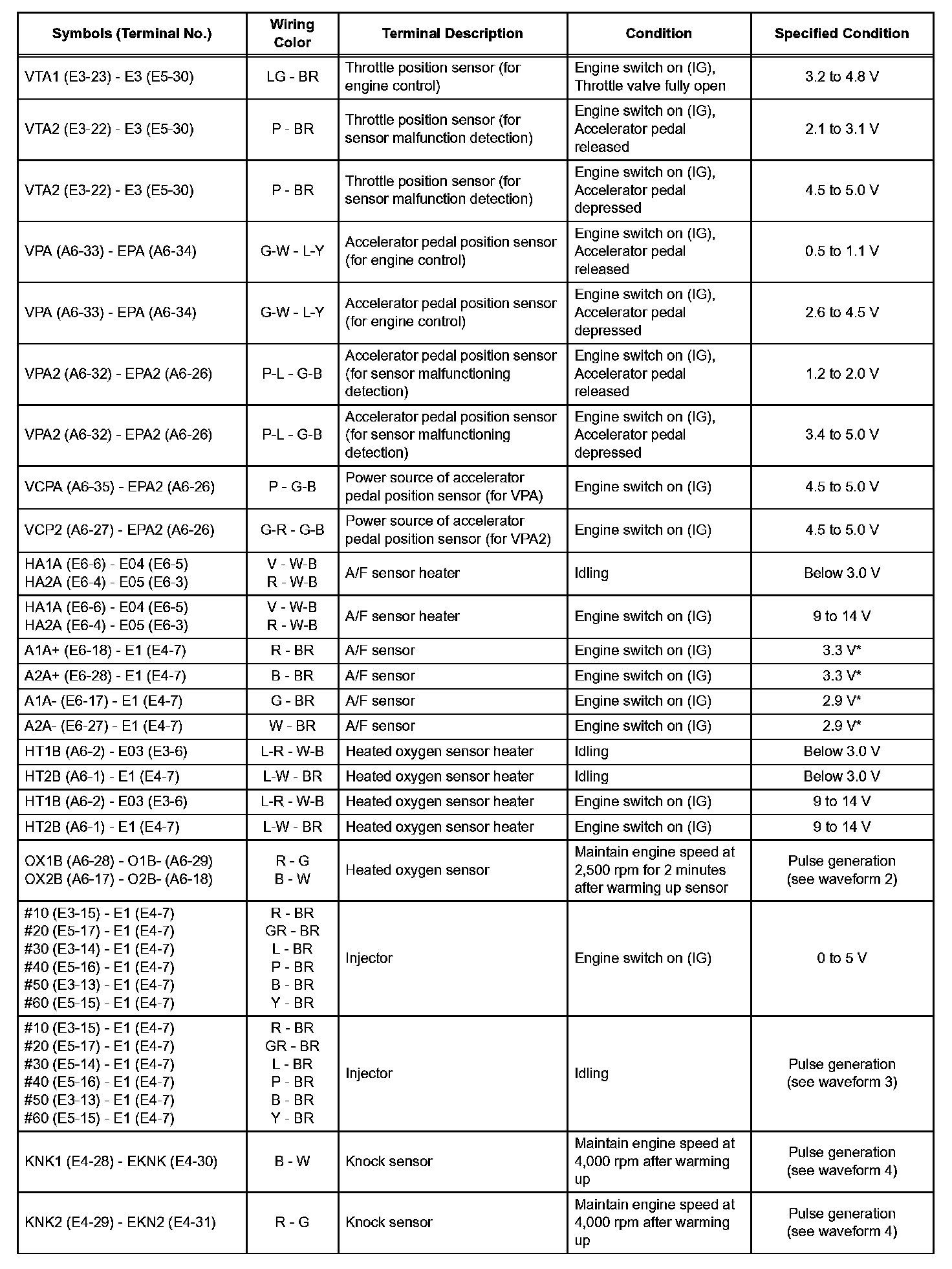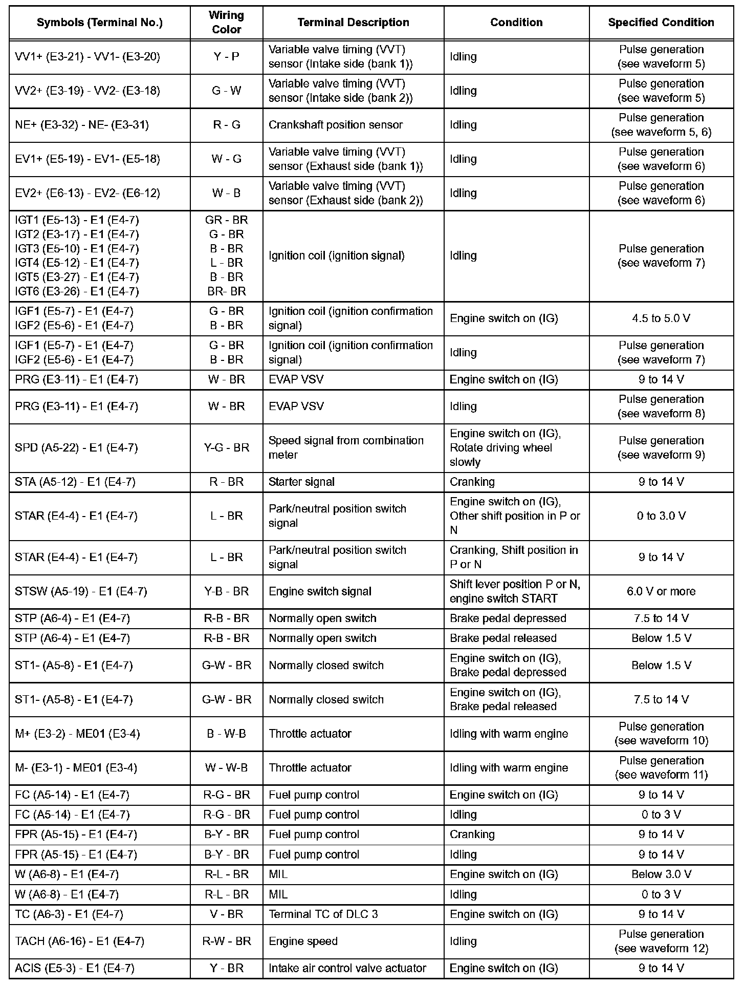 Pinout Values and Diagnostic Parameters