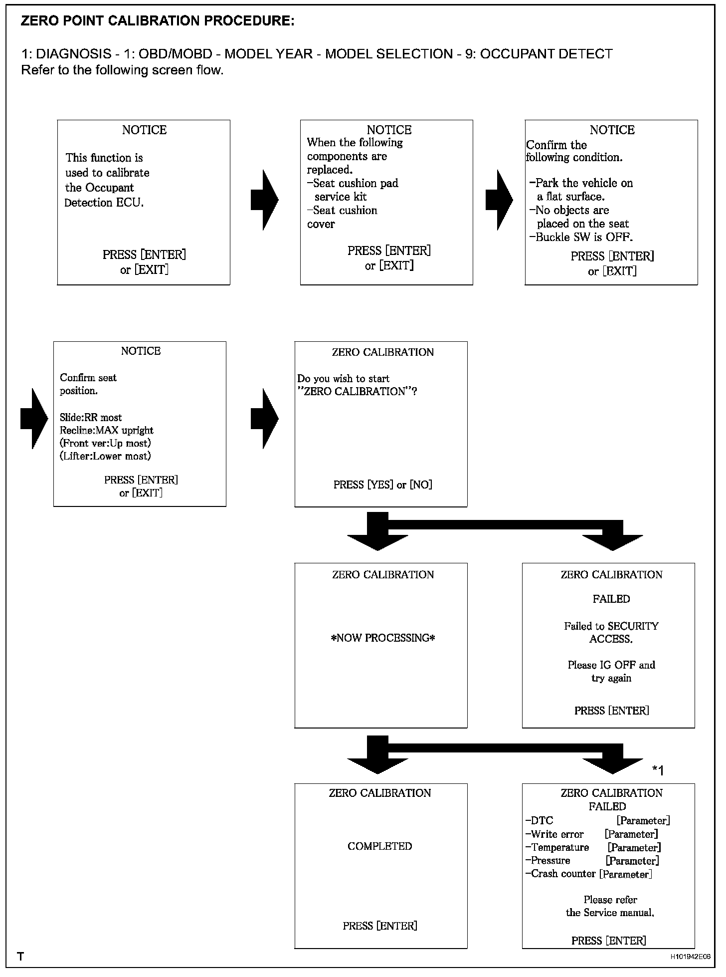 - If the zero point calibration is performed when the calibration conditions are not satisfied, DTC B1797 is output.