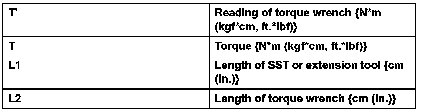 1. Use the formula below to calculate special torque values for situations where SST or an extension tool is combined with a torque wrench.