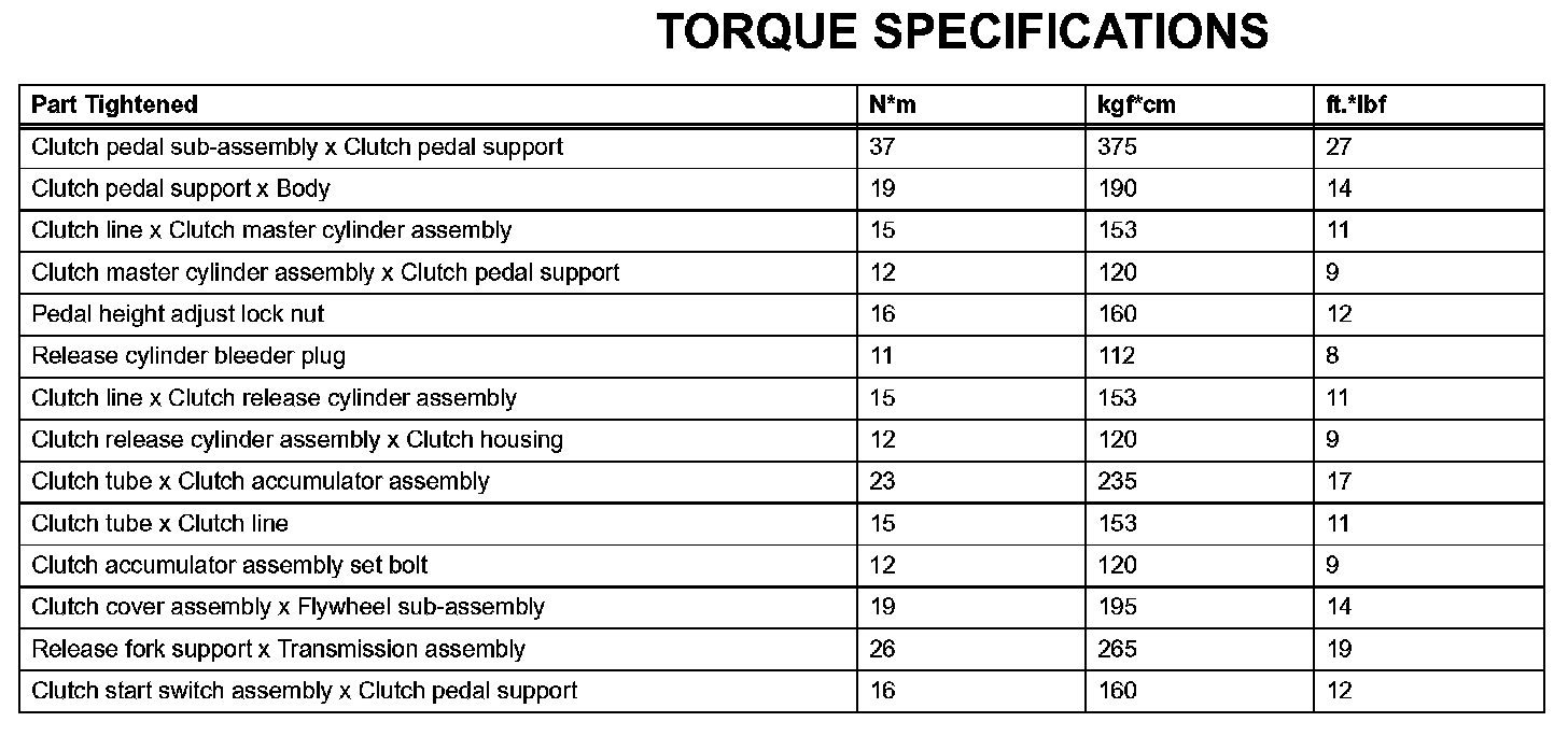Clutch - Torque Specifications: