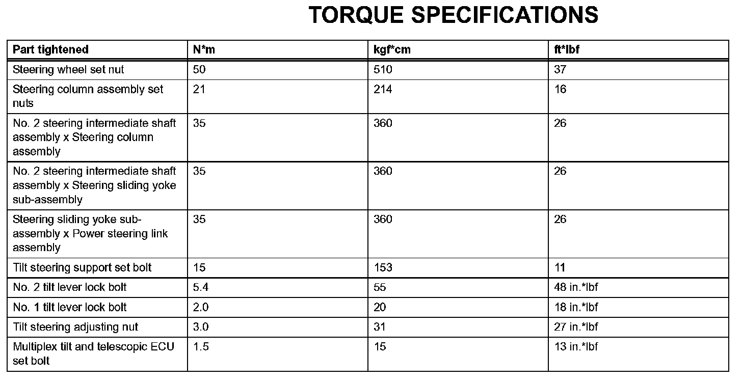 Steering Column - Torque Specifications: