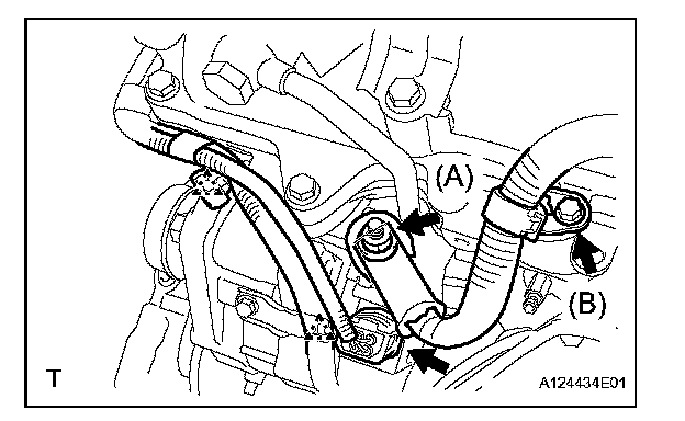 c. Remove the bolt (B) and clamp bracket.