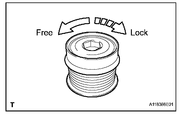 a. Hold the center of the pulley, and confirm that the outer ring turns counterclockwise and does not turn clockwise.