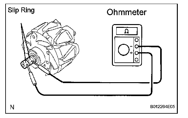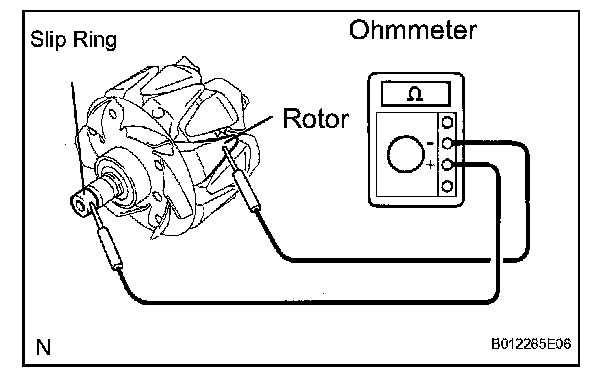 1. Using an ohmmeter, measure the resistance between the slip ring and rotor.