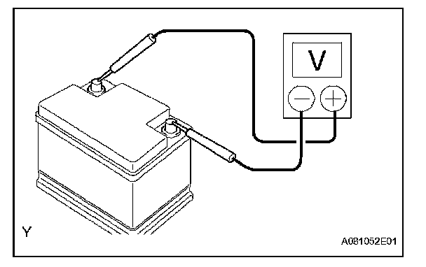 c. Measure the battery voltage between the negative (-) and positive (+) terminals of the battery.