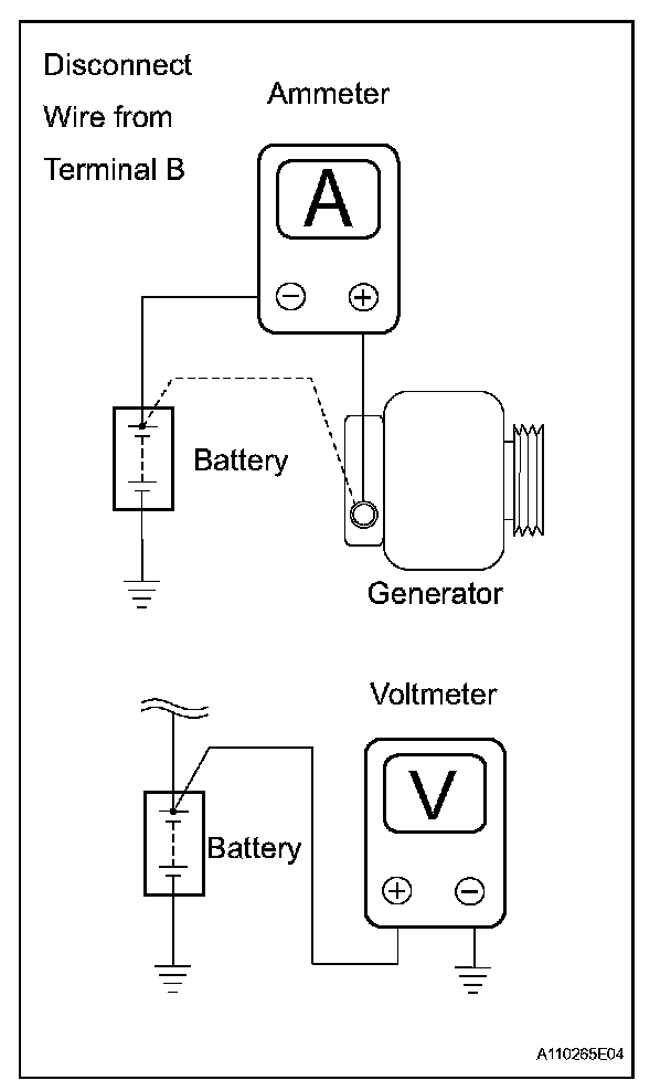 1. Disconnect the wire from terminal B of the generator and connect it to the negative (-) lead of the ammeter.