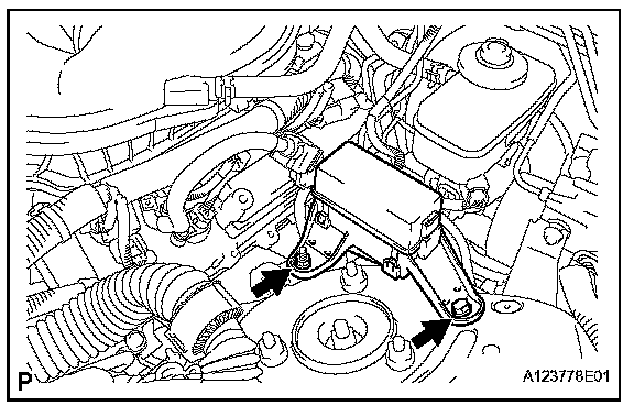 d. Remove the 2 bolts and starter.