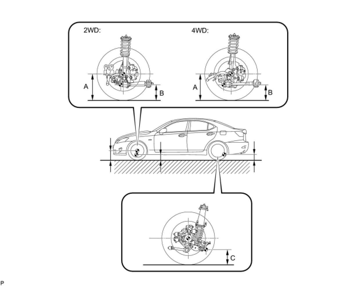 - Before inspecting the wheel alignment, adjust the vehicle height to the specified value.