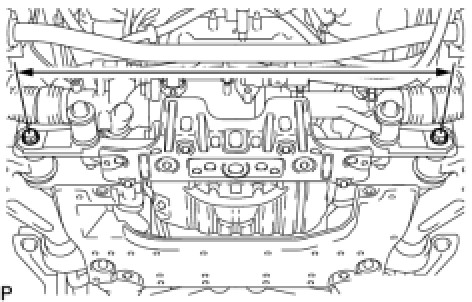 (1) Measure the dimension between the center of the installation bolts of the front lower suspension arm.