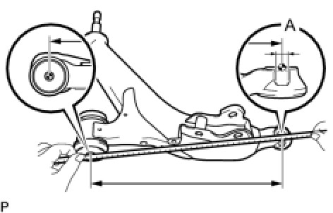 (2) Measure the dimension between the center of the front lower suspension arm assembly bush and the center of position A.