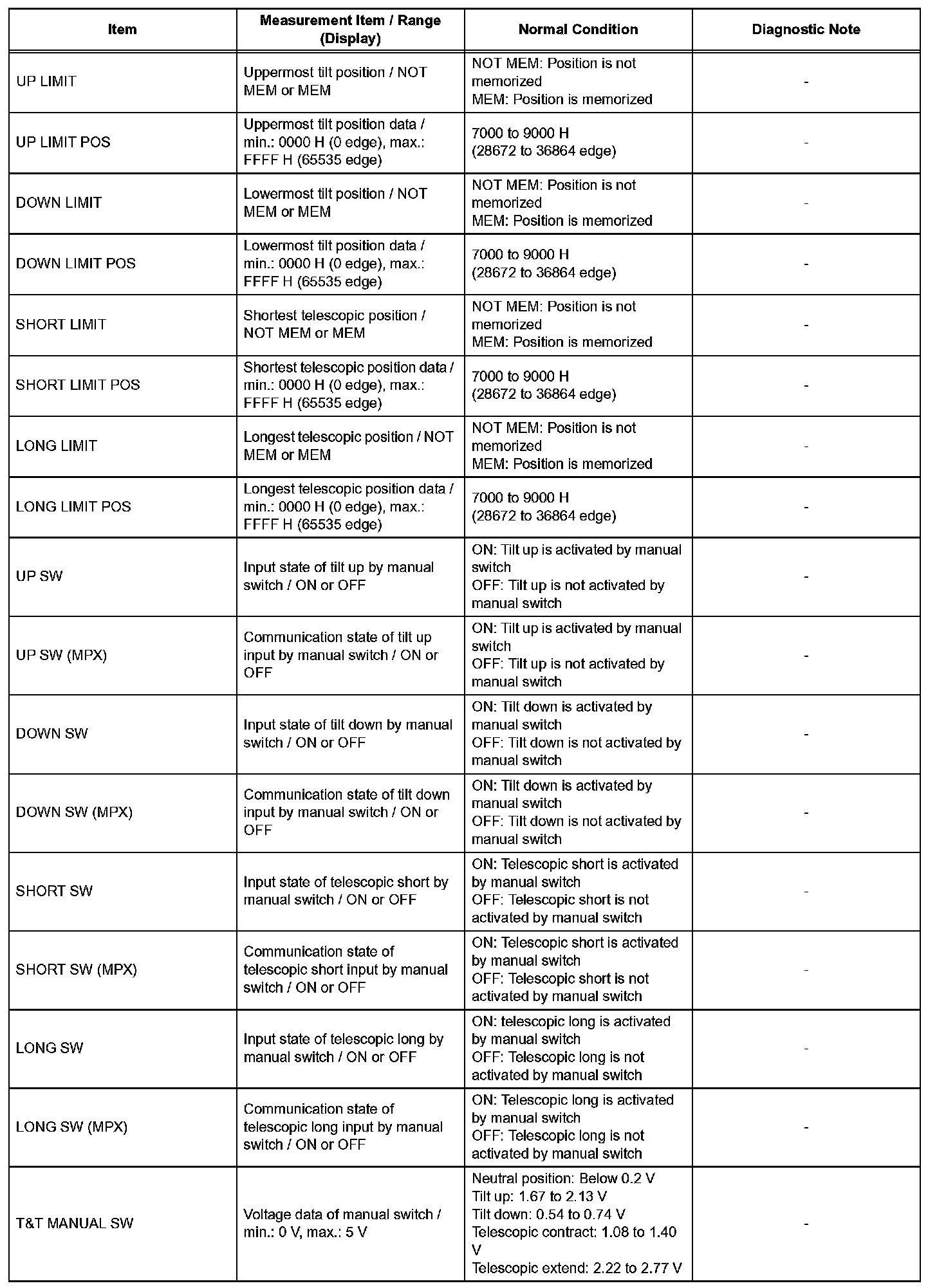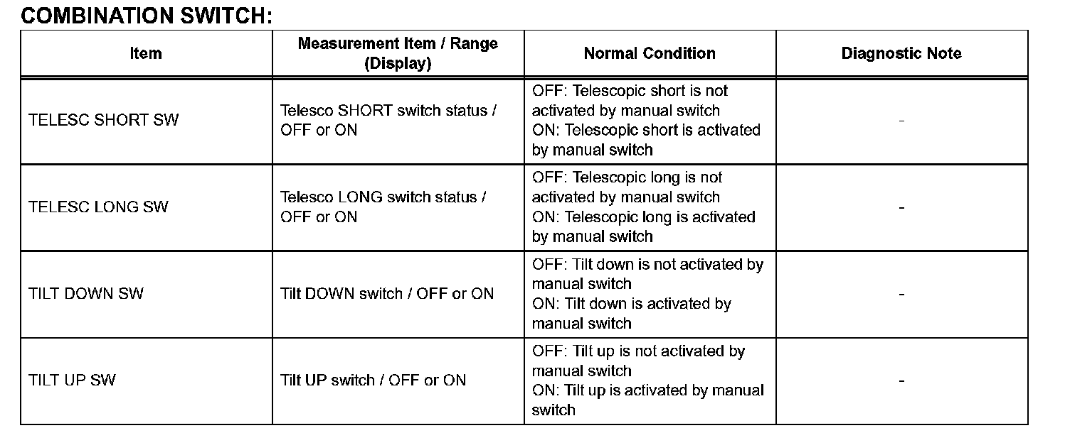 DATA LIST / ACTIVE TESTHINT: By accessing the DATA LIST displayed on the intelligent tester, you can perform such functions as reading the values of switches and sensors without removing any parts. Reading the DATA LIST is first step in troubleshooting and is one method to shorten labor time.