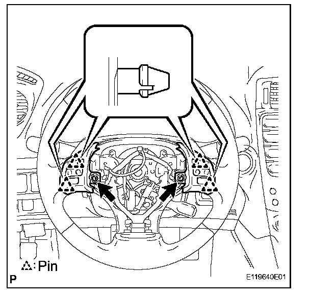 c. Disengage the 4 pins and remove the steering pad switch assembly.