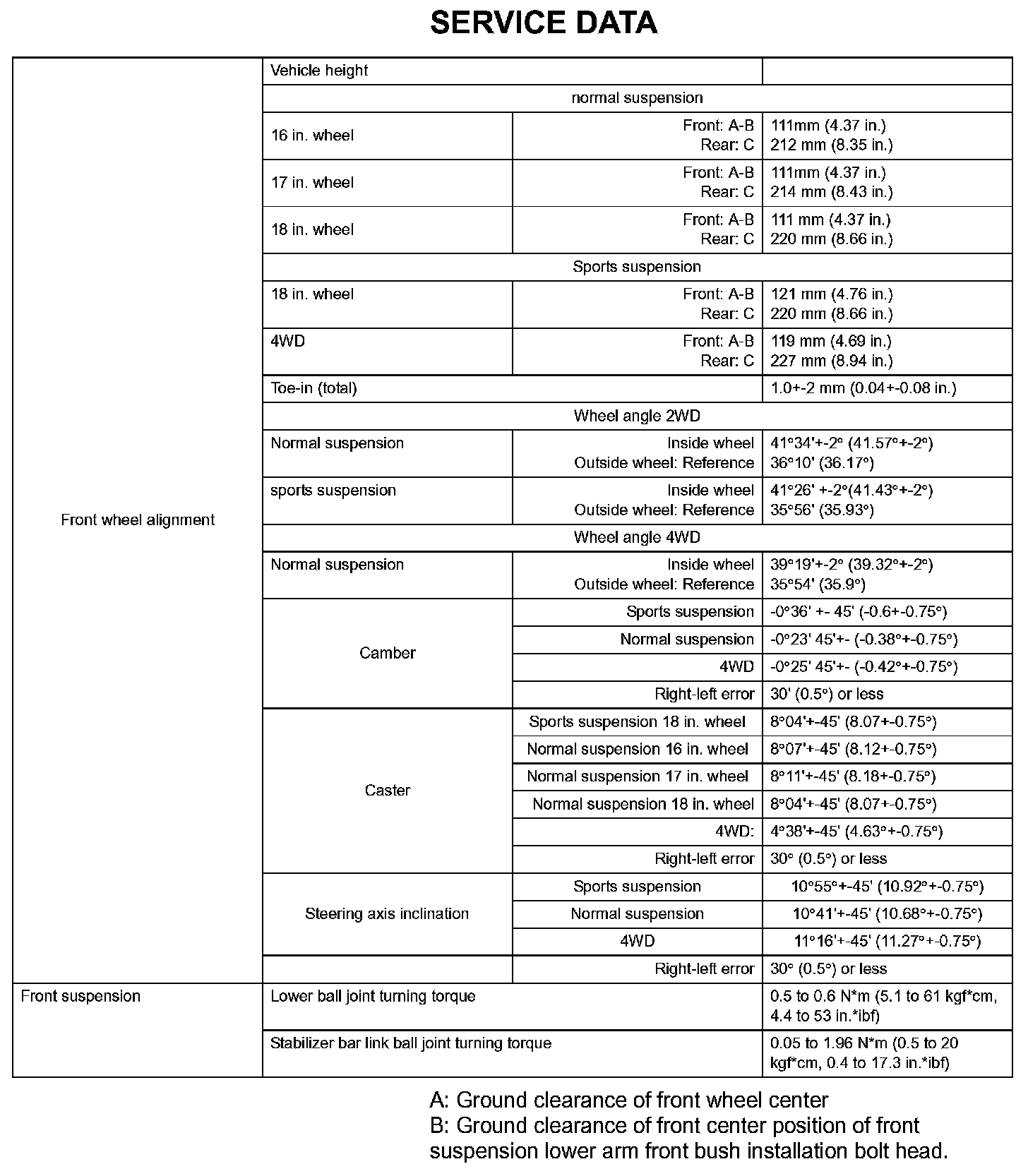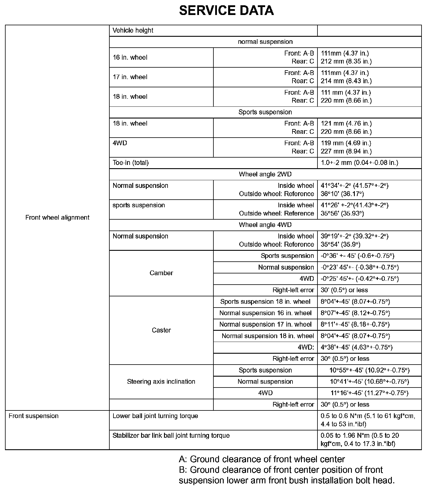 Suspension - Service Data (Part 1):