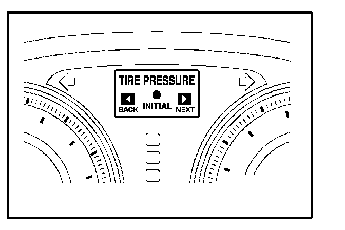 7. Press and hold the left or right side of the satellite switch to display the "TIRE PRESSURE". Press and hold the "ON/OFF" button until the Low Tire Pressure Warning Light blinks 3 times and then turns OFF to set the tire pressure initialization.