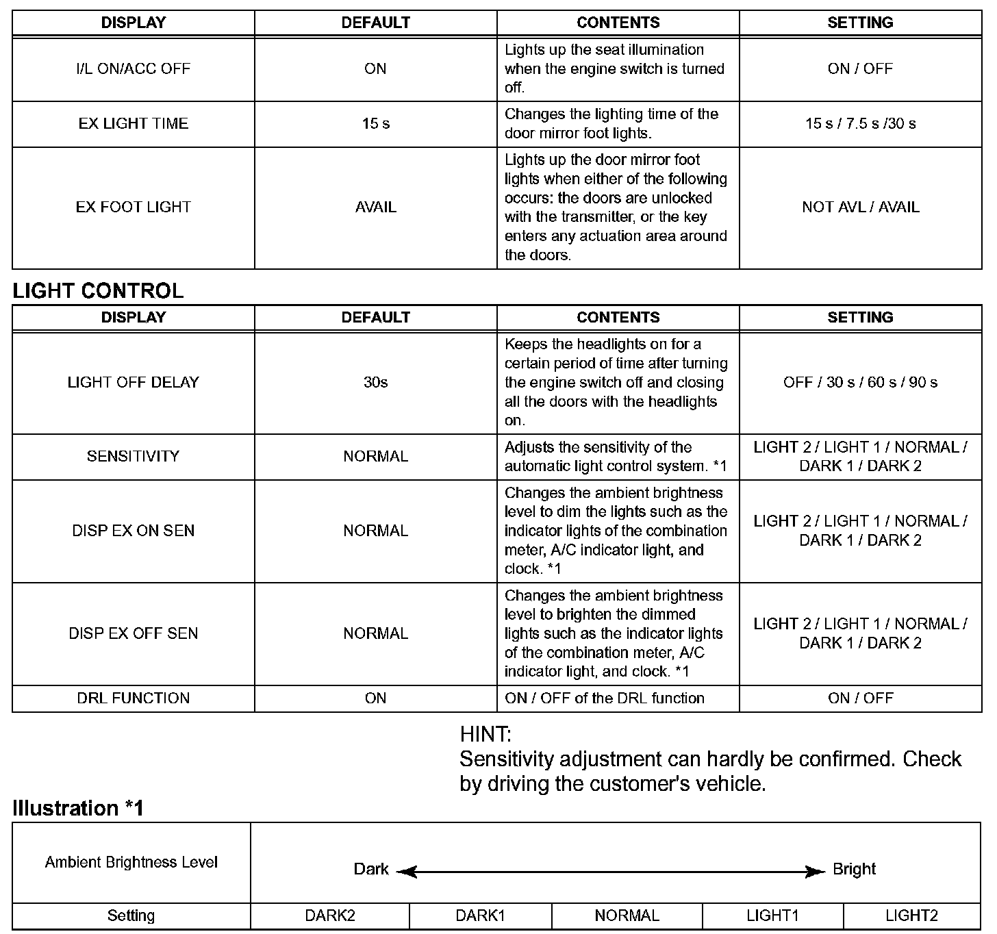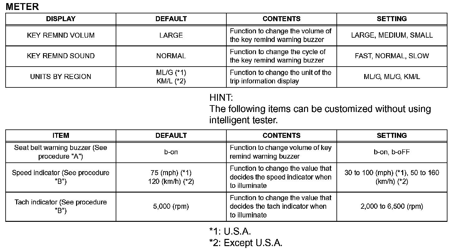 CUSTOMIZE PARAMETERSHINT: The following items can be customized.