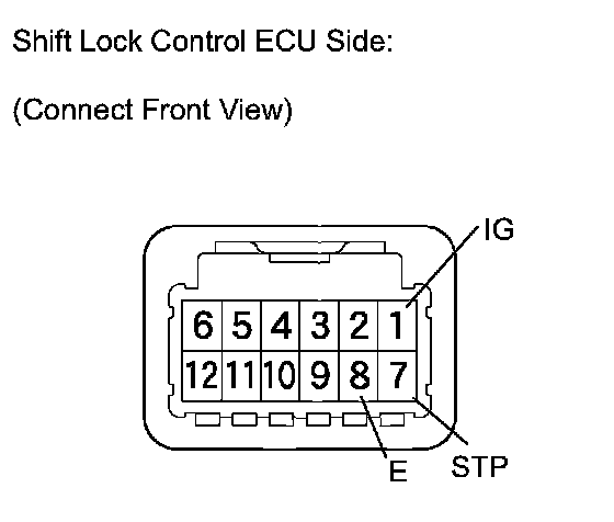 Shift Lock Control ECU Side (Connector Front View):