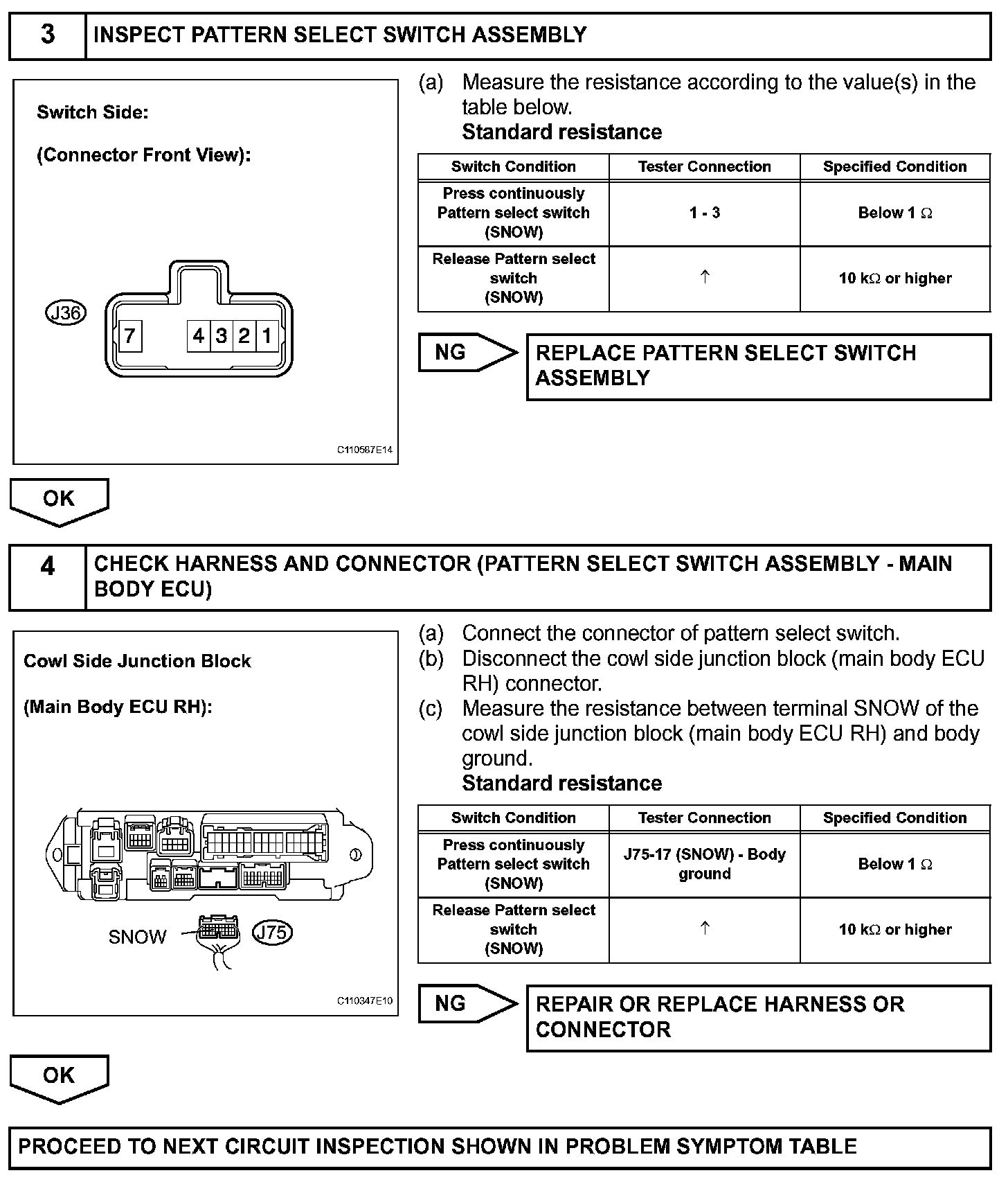 (*) Pattern Select Switch (ECT SNOW Switch)