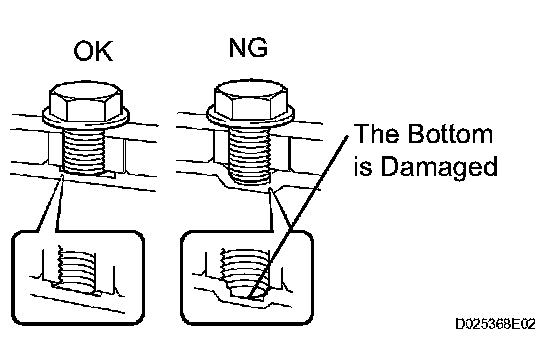 1) When there is any damage to the end of the bolt for the torque converter clutch and to the bottom of the bolt hole, replace the bolt and the torque converter clutch.