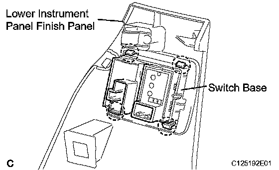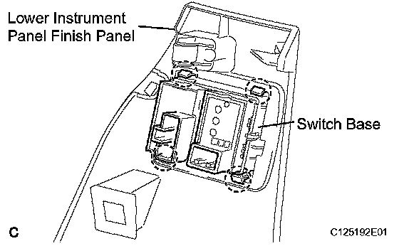 a) Disengage the 4 claws, and remove the switch base from the lower instrument panel finish panel.