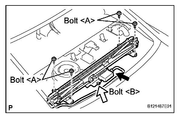 a. Install the rear window shade assembly, and temporarily tighten 4 bolts and .