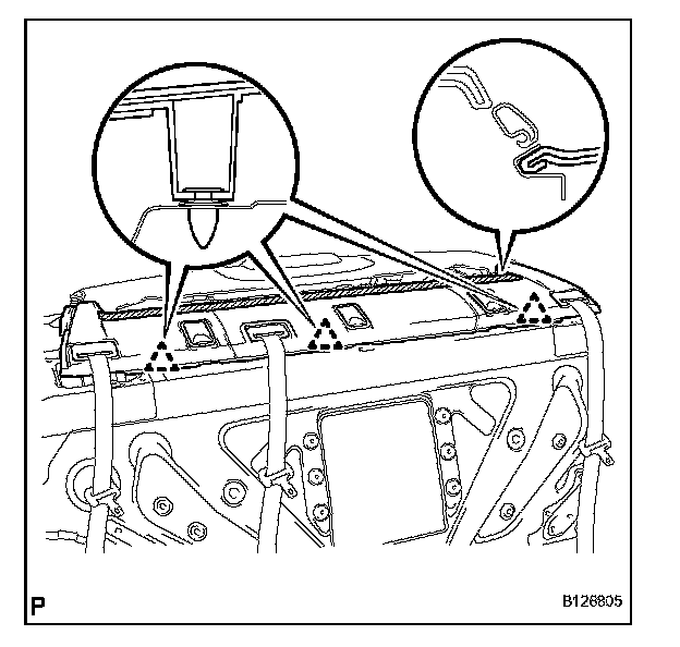 d. Disengage the 2 claws and remove the rear seat shoulder belt covers.