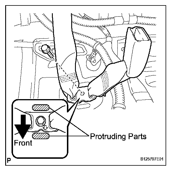 NOTICE: Do not allow the anchor part of the rear seat 3 point type belt assembly LH and the protruding parts of the floor panel to overlap.