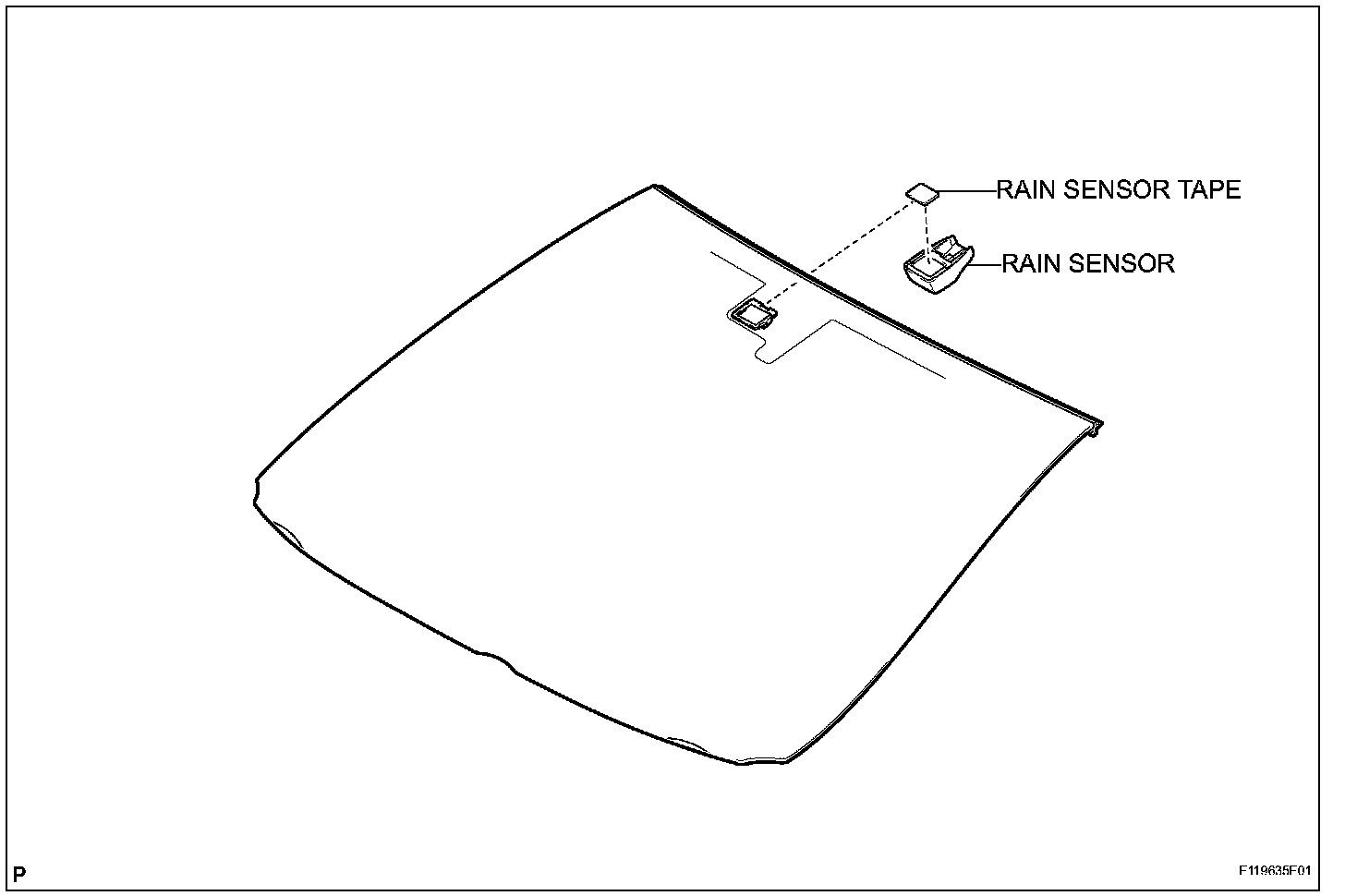 - Check that the rain sensor tape does not remain on the windshield glass. If it does, remove it before installing the rain sensor.