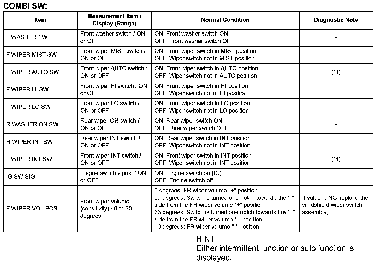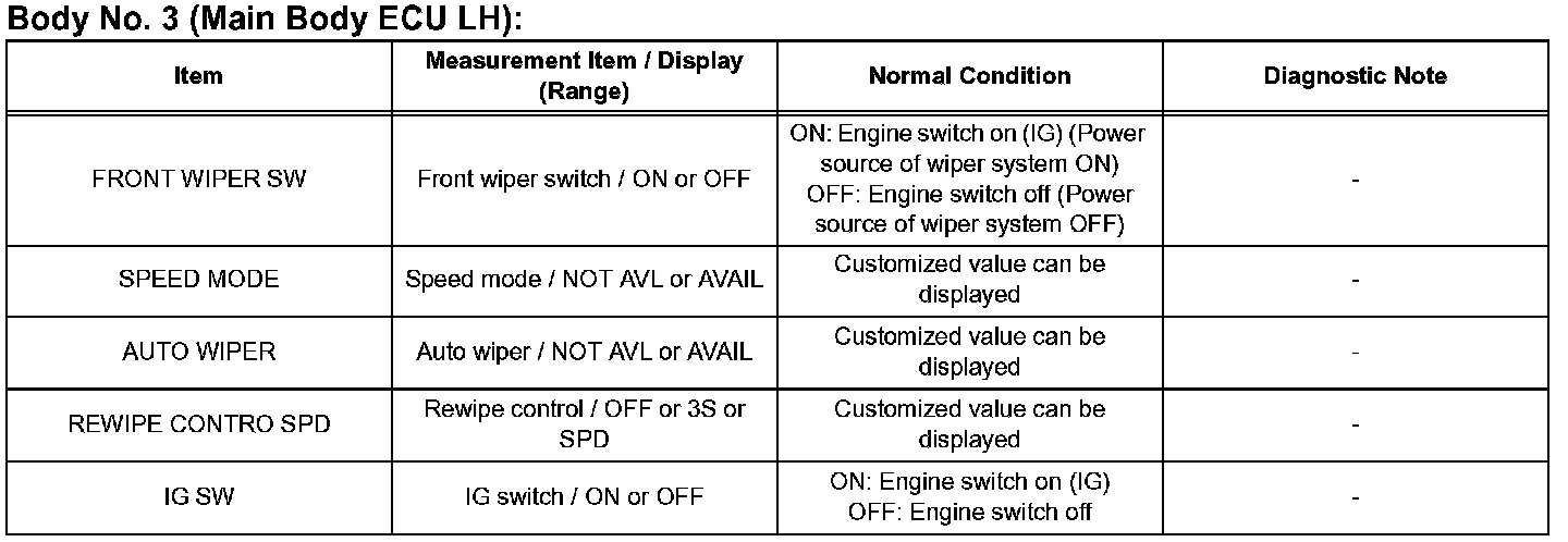 READ DATA LISTHINT: Using the intelligent tester to read the DATA LIST allows the values or states of switches, sensors, actuators, and other items to be read without removing any parts. This nonintrusive inspection can be very useful as intermittent conditions or signals may be discovered before parts or wiring is disturbed. Reading the DATA LIST information early in troubleshooting is one way to save diagnostic time.