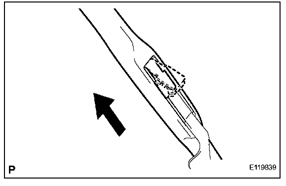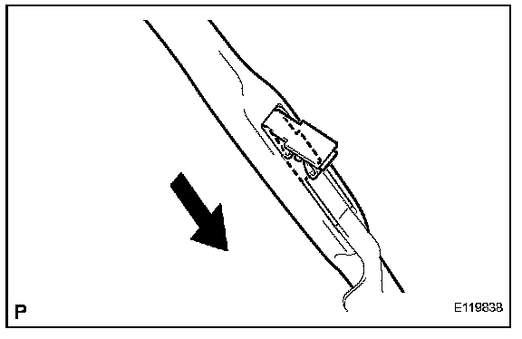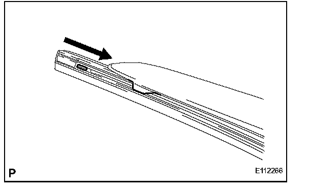 b. Install the wiper rubber to the front wiper blade LH with the top of the rubber (curved end) facing the axis of the wiper arm.