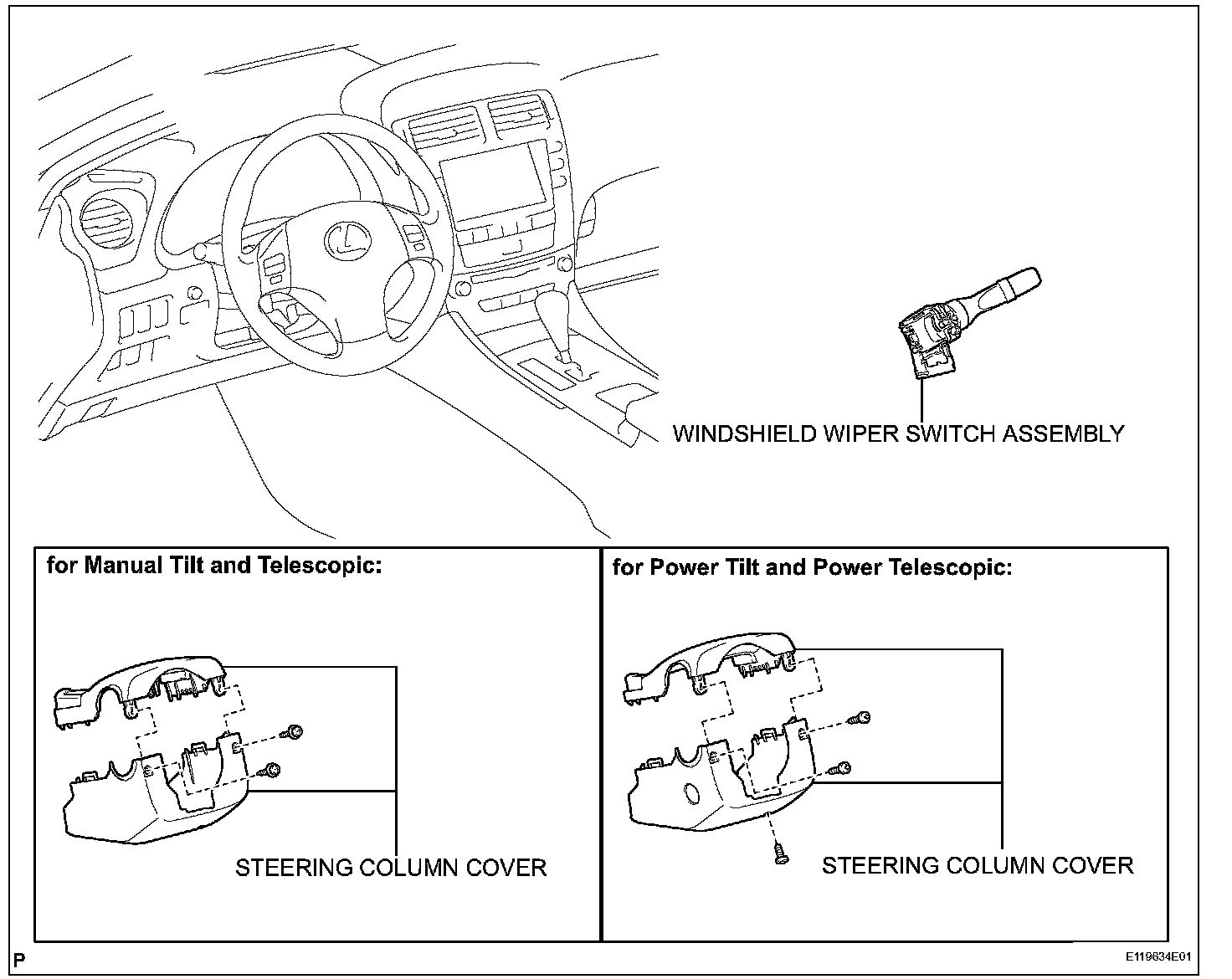 1. REMOVE STEERING COLUMN COVER (for Manual Tilt and Telescopic)