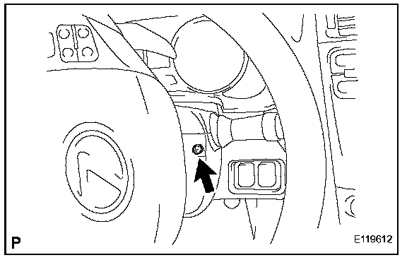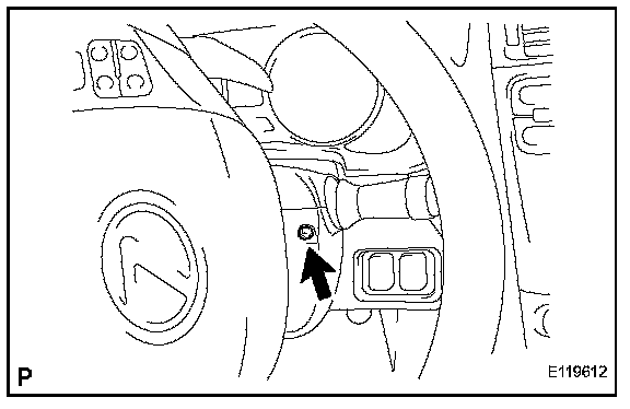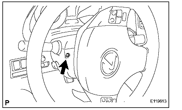 a. The steering wheel assembly is turned to the right and remove the screw as shown in the illustration.