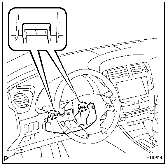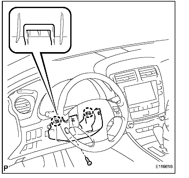 b. Engage the 2 claws and install the 2 screws to the steering column cover.